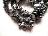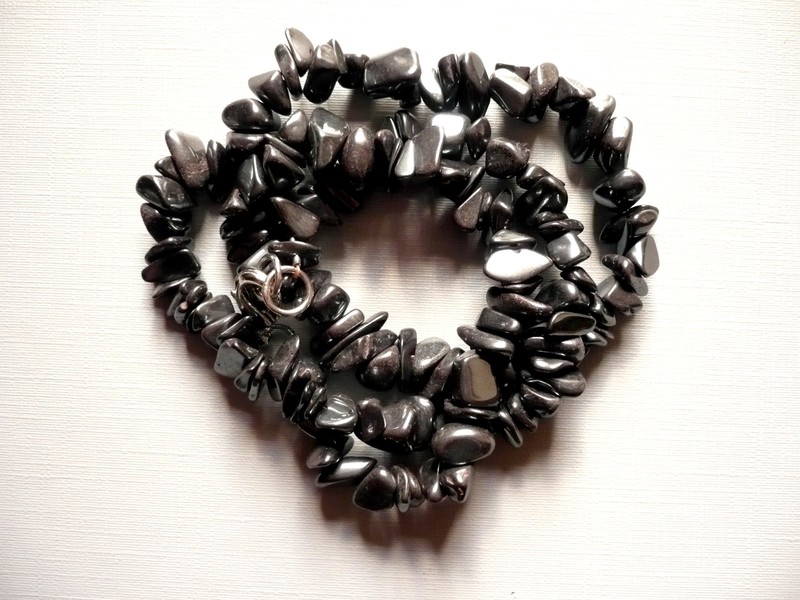 Minerální zlomky hematitu v délce 45 cm, navlečeno na šňůře s karabinkou. V nabídce jsou také zlomky v délce 90 cm.