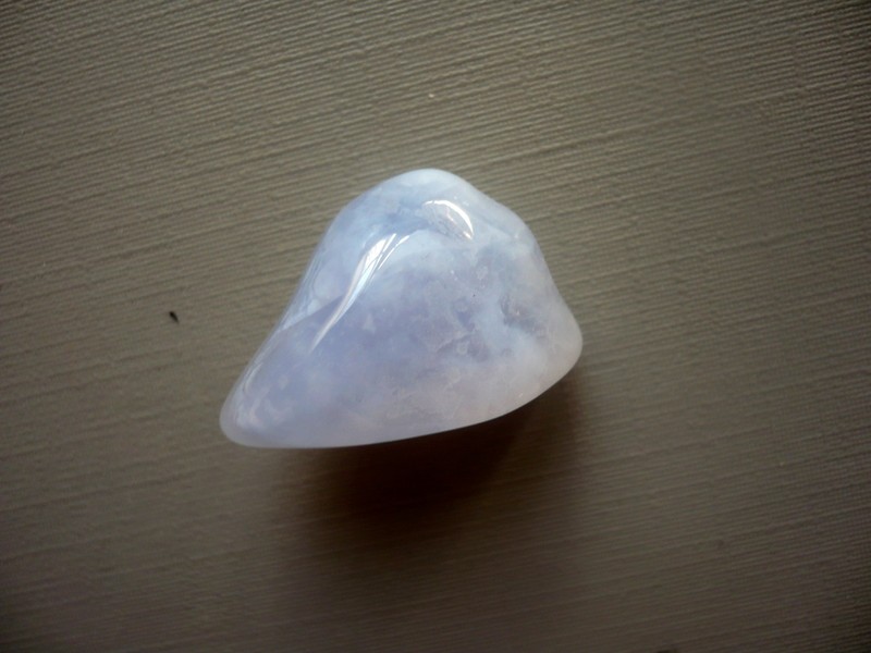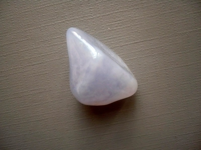 Tromlovaný kámen - chalcedon modrý. Rozměry 24 x 15 x 14 mm. Naleziště Malawi. Chalcedon - povzbuzuje optimismus a dobou vůli, stimuluje schopnost učení. Zahání strach, smutek a deprese.