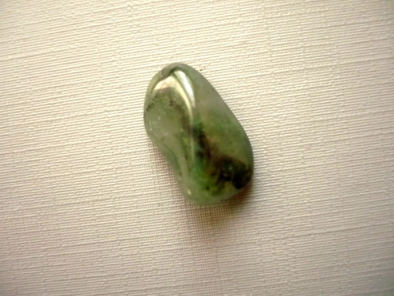 Tromlovaný kámen - chalcedon zelený (mtorolit). Rozměry 20 x 12 x 7 mm. Naleziště Zimbabwe. Chalcedon - povzbuzuje optimismus a dobou vůli, stimuluje schopnost učení. Zahání strach, smutek a deprese.