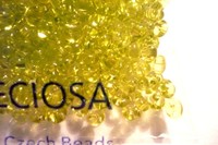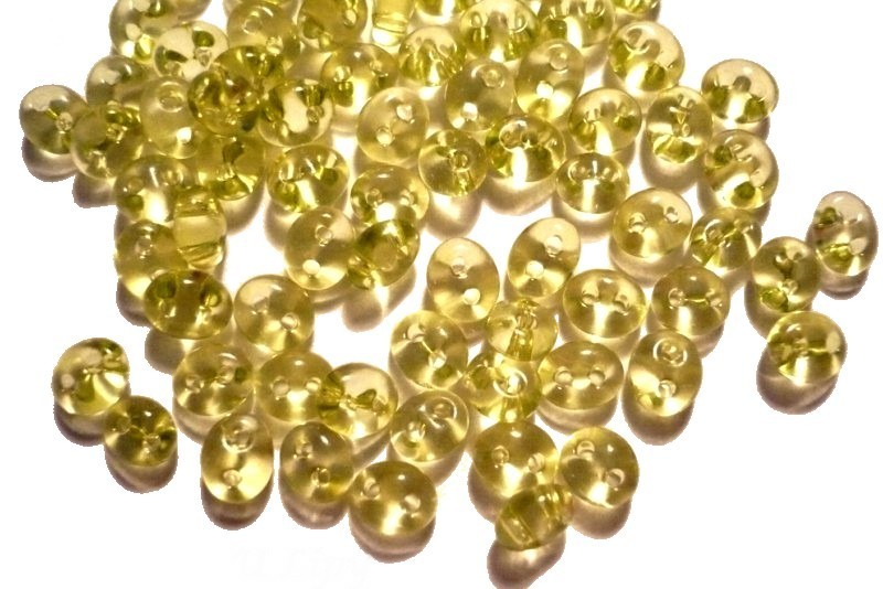Rokajlové korálky české výroby - dvoudírkový rokajl = twin Preciosa Jablonex. Rozměry 5 x 3,5 x 2,5 mm. Barva kiviová . Cena za 10 gramů (cca 180 ks). T14