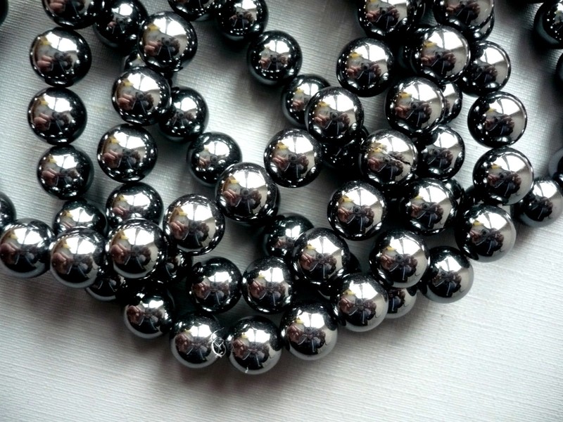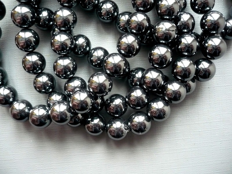Vrtané kuličky - hematit. Průměr 8 mm. Cena za 2 kusy.