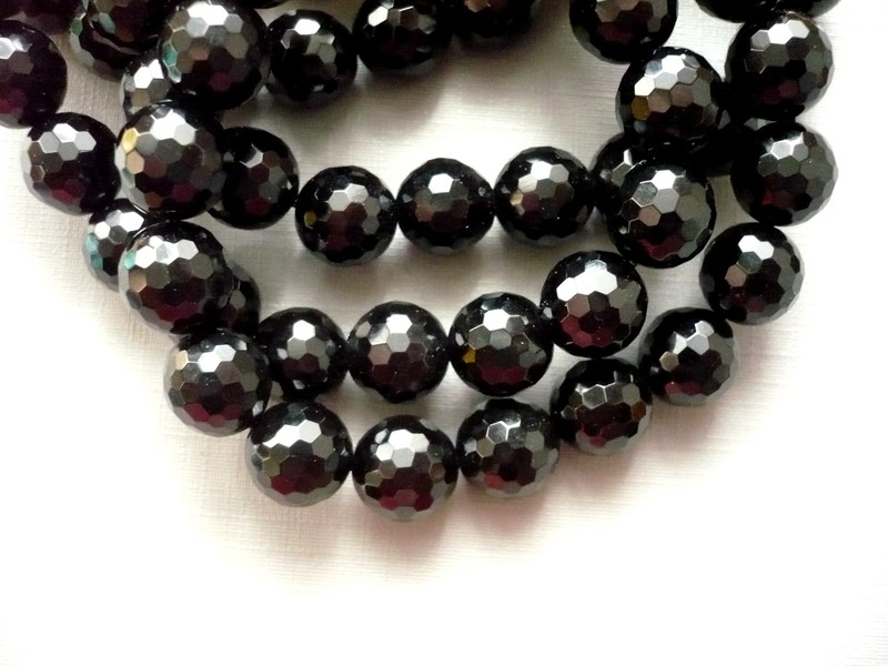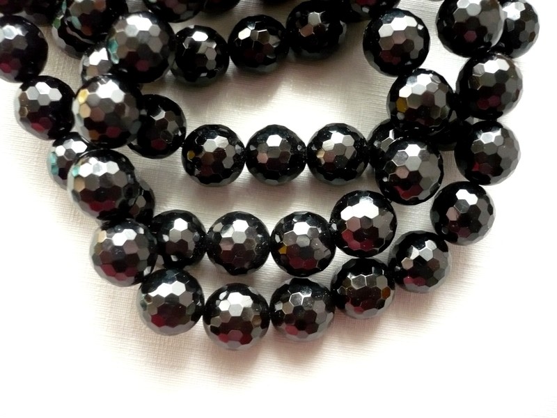 Vrtané fasetované kuličky - onyx. Průměr 10 mm. Cena za 1 kus. Je leštěný, lesklý. V naídce také ve velikosti 4,5 mm, 6 mm, kostky, donuty, zlomky a jiné.