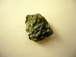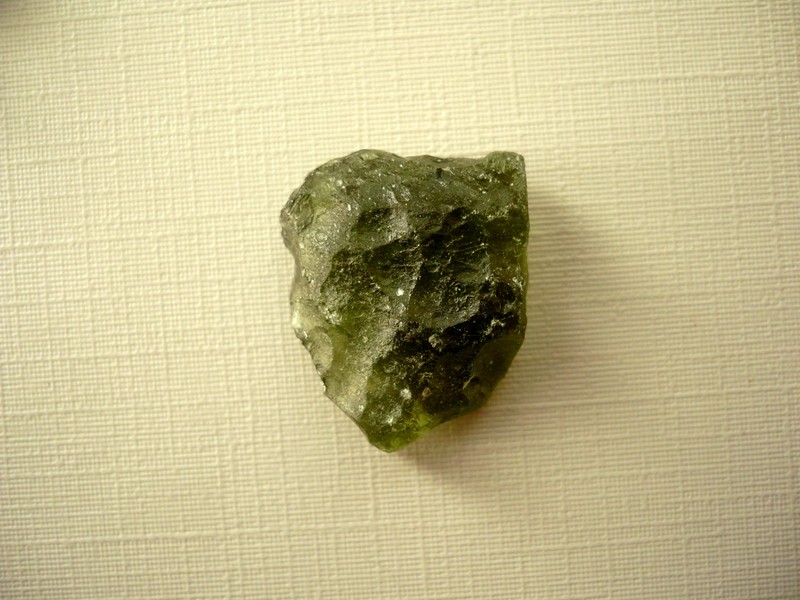 Šperkový kámen - vltavín (moldavit). Váha 2,95 g, rozměry 21 x 17 x 7 mm. Původ Jižní Čechy, různé lokality. Vltavíny - používaly se odedávna jako amulety a talismany, nosily se pro štěstí a plodnost.