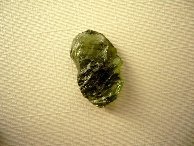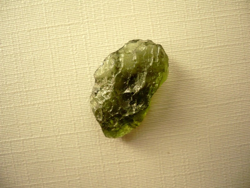 Šperkový kámen - vltavín (moldavit). Váha 1,91 g, rozměry 21 x 13 x 7 mm. Původ Jižní Čechy, různé lokality. Vltavíny - používaly se odedávna jako amulety a talismany, nosily se pro štěstí a plodnost.