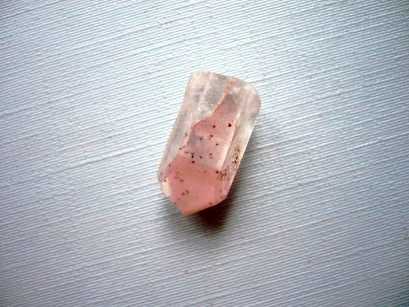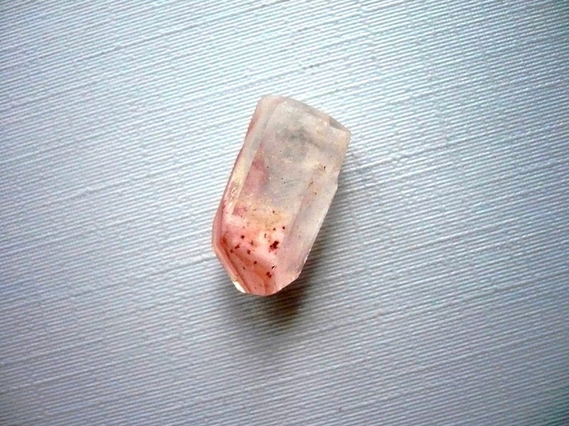 Špice z křišťálu s hematitem. Rozměry 18 x 10 x 8 mm. Původ Brazílie.