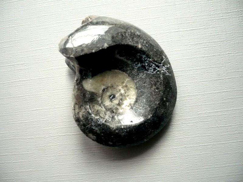 Goniatit - prvohorní fosílie, předchůdce amonitů. Je leštěný z obou stran, původ Maroko. Rozměry 42 x 34 x 20 mm.