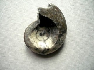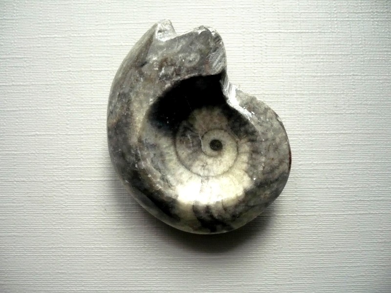 Goniatit - prvohorní fosílie, předchůdce amonitů. Je leštěný z obou stran, původ Maroko. Rozměry 41 x 31 x 18 mm.