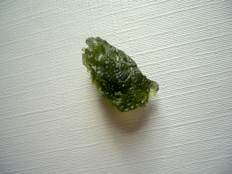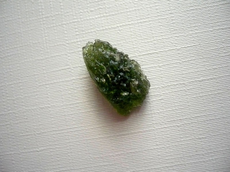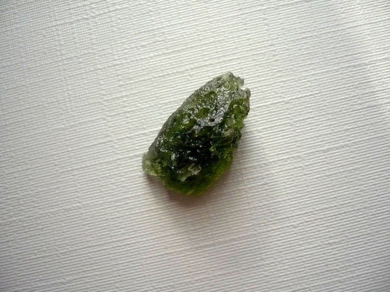 Šperkový kámen - vltavín (moldavit). Váha 1,47 g, rozměry 18 x 11 x 9 mm. Původ Jižní Čechy, různé lokality. Vltavíny - používaly se odedávna jako amulety a talismany, nosily se pro štěstí a plodnost.