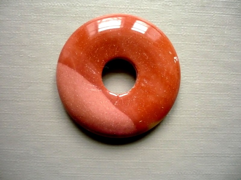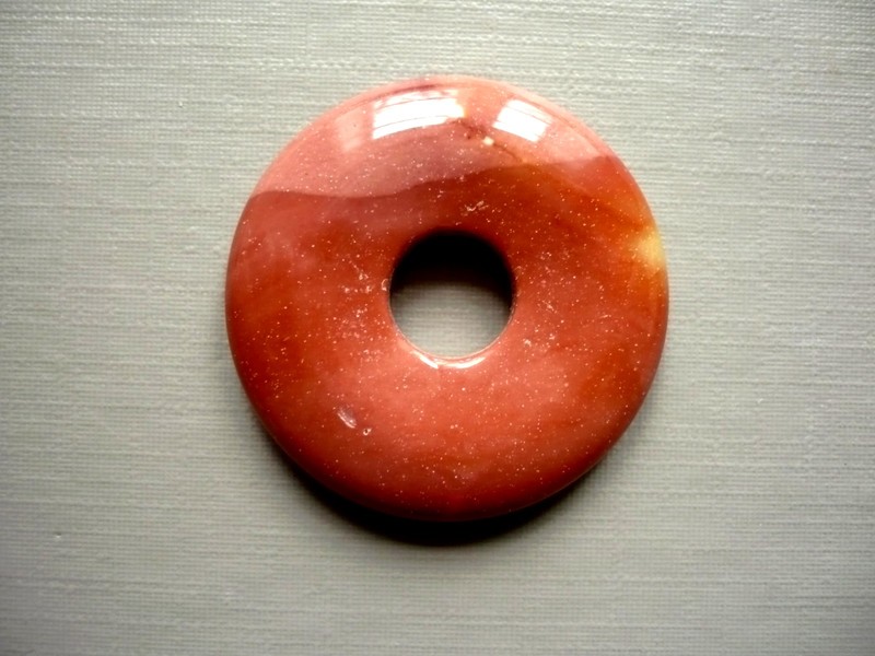 Jaspis mookait - opracovaný donut vhodný k další tvorbě i jen k zavěšení. Průměr 30 mm, výška 5 mm. Každý má originální kresbu, kupujete vyfocený kus. V nabídce také závěsy na tyto donuty - jednoduché a spirálové.