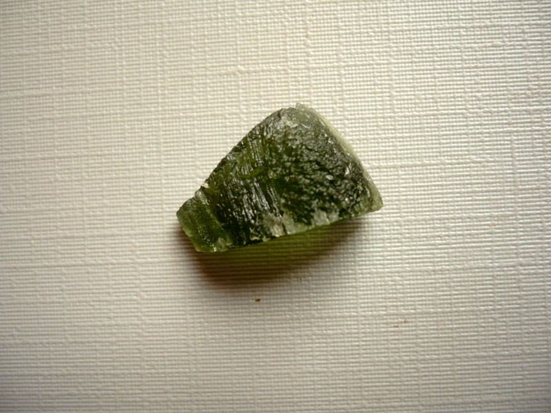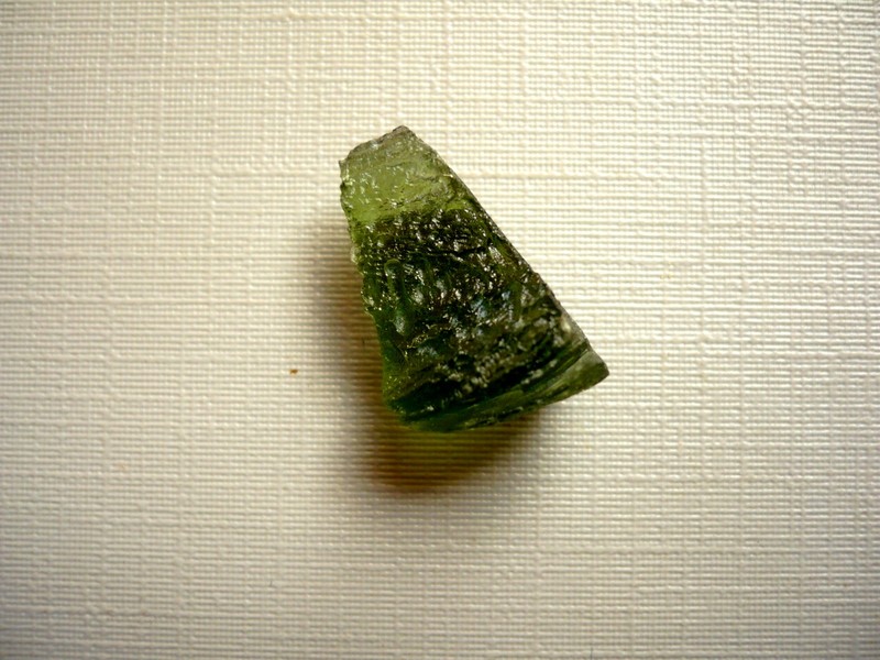 Šperkový kámen - vltavín (moldavit). Váha 1,62 g, rozměry 18 x 12 x 9 mm. Původ Jižní Čechy, různé lokality. Vltavíny - používaly se odedávna jako amulety a talismany, nosily se pro štěstí a plodnost.