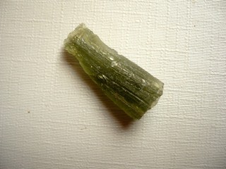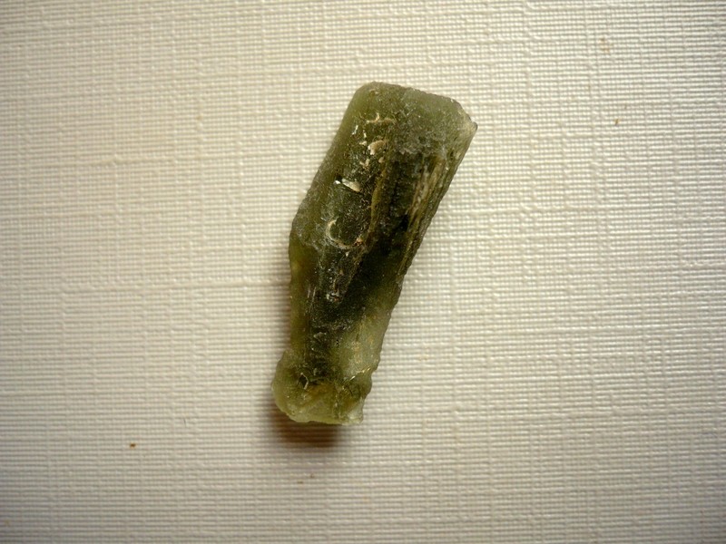 Šperkový kámen - vltavín (moldavit). Váha 1,60 g, rozměry 24 x 10 x 7 mm. Původ Jižní Čechy, různé lokality. Vltavíny - používaly se odedávna jako amulety a talismany, nosily se pro štěstí a plodnost.