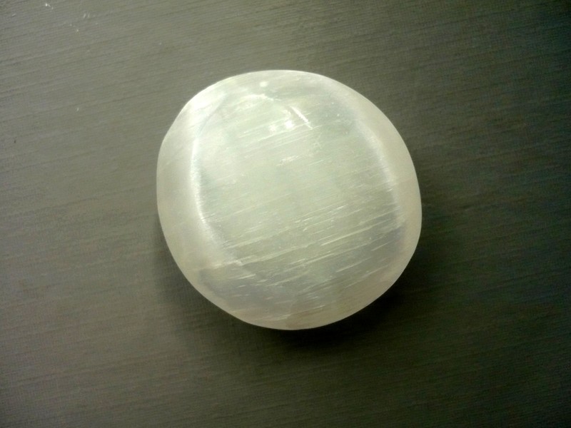 Nevrtané mýdlo ze selenitu. Rozměry 31 x 29 x 12 mm. Vhodné i jako hmatka do kapsy.