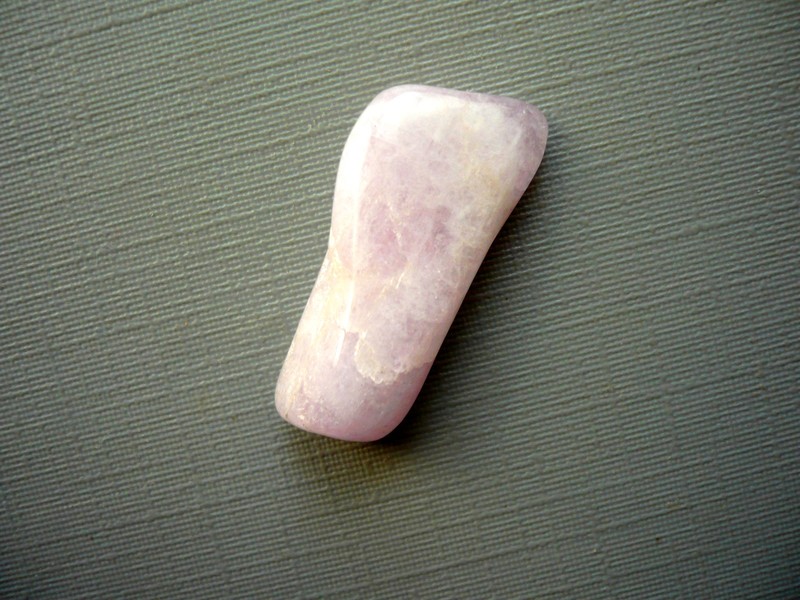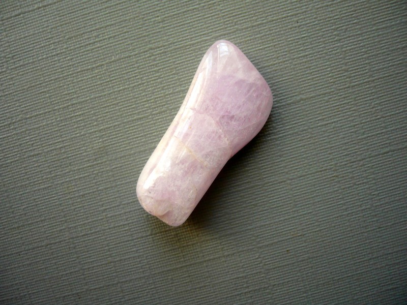 Kunzit tromlovaný (odrůda spodumenu). Původ Pákistán. Rozměry 23 x 12 x 6 mm. Kunzit - představuje nebe a nekonečno, je vhodný při psychických onemocněních, při problémech se srdcem, uklidňuje.