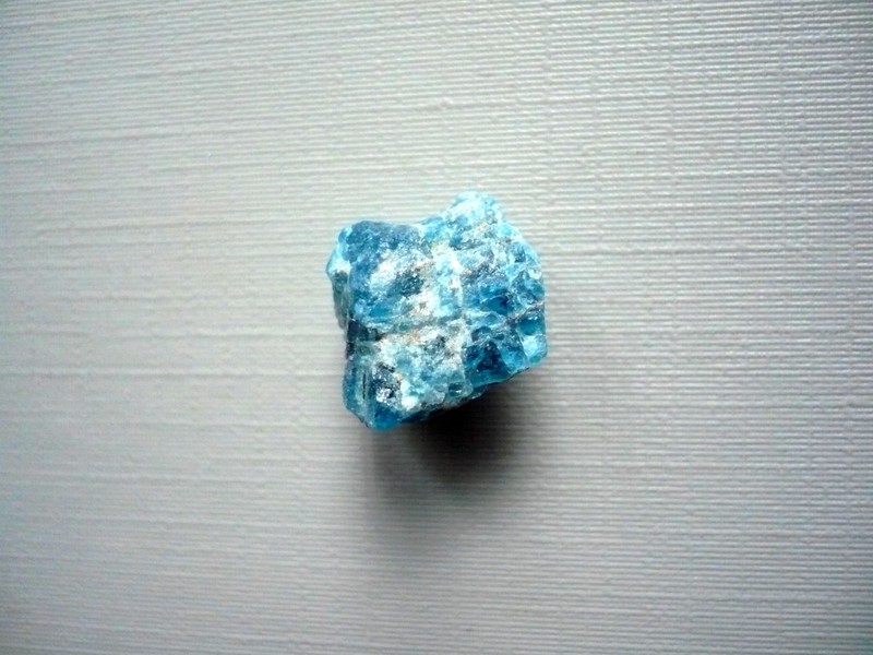 Surový kámen - modrý apatit. Rozměry 15 x 11 x 11 mm. Původ Madagaskar.