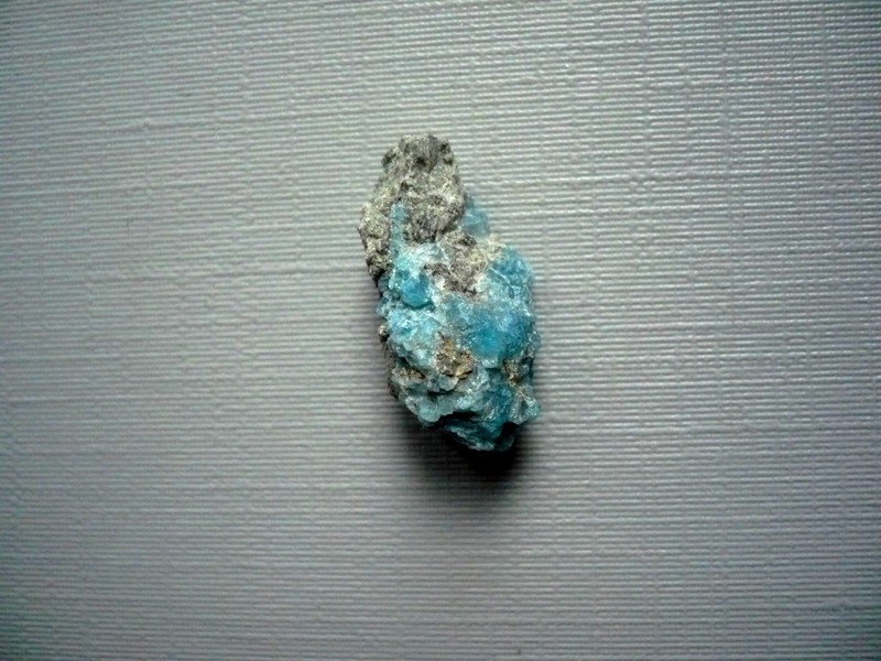 Surový kámen modrý apatit. Rozměry 19 x 10 x 7 mm. Původ Madagaskar.