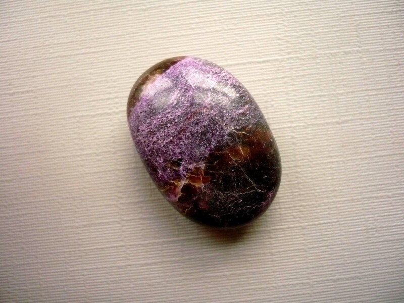 Tromlovaný kámen - fialový stichtit se zeleným serpentinitem. Rozměry 24 x 16 x 9 mm. Původ JAR, extra kvalita.