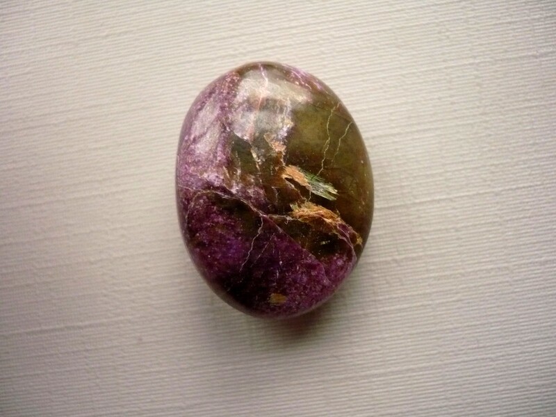 Tromlovaný kámen - fialový stichtit se zeleným serpentinitem. Rozměry 24 x 19 x 11 mm. Původ JAR, extra kvalita.