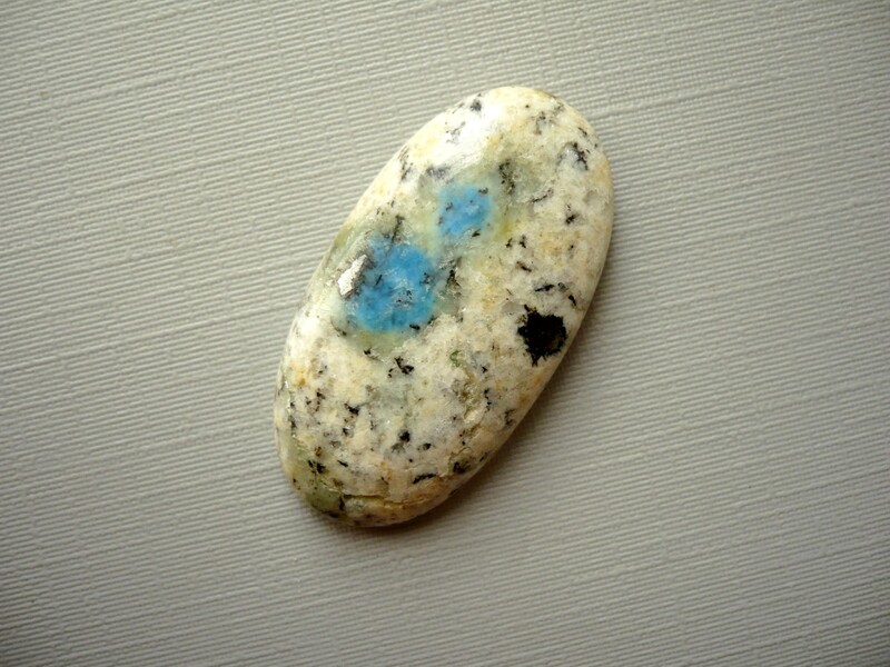 Kabošon - azurit v žule, top kvalita! Rozměry 32 x 17 x 5 mm. Vhodné pro cínování, obšívání... Kupujete tento konkrétní kousek. Při cínování žula tmavne. Původ Pákistán.