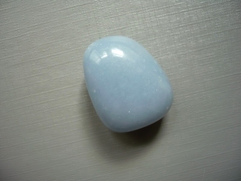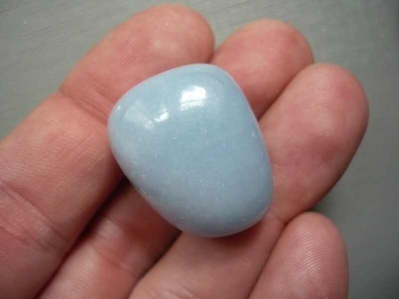 Tromlovaný kámen - angelit. Rozměry 27 x 22 x 16 mm. Kupujete vyfocený kousek. Leštěné. Vhodné pro cínování, wire-wrapping.. V nabídce také korálky a placky angelitu.