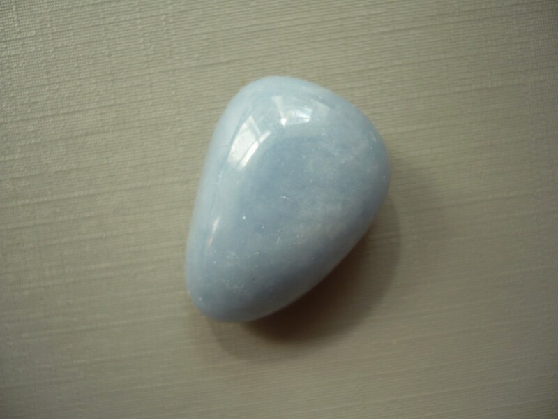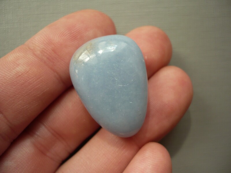Tromlovaný kámen - angelit. Rozměry 29 x 20 x 16 mm. Kupujete vyfocený kousek. Leštěné. Vhodné pro cínování, wire-wrapping.. V nabídce také korálky a placky angelitu.