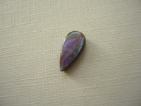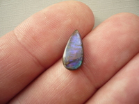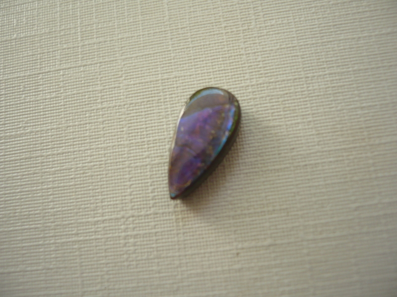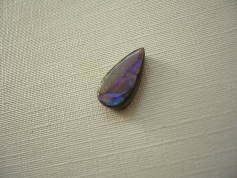 Nevrtaný tvar - kabošon ammolitu. Rozměry 13 x 16 x 3 mm. Je to velmi vzácný kousek, duhová vrstva aragonitu. Jde o malé kousky amonitových schránek, které hrají všemi duhovými barvami. Jsou na břidlicové podložce, chráněno je vrstvou křišťálu, lastury jsou jinak velice křehké. Původ Kanada.