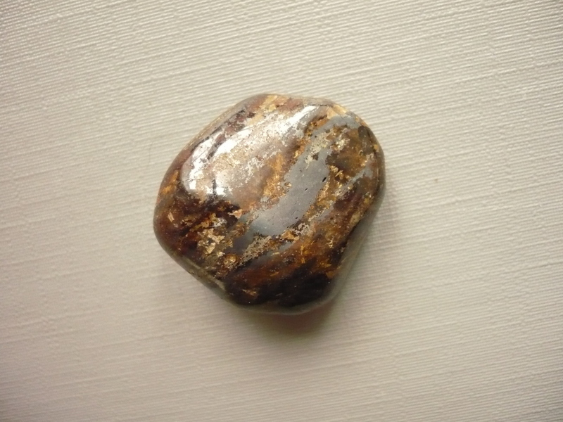 Tromlovaný kámen - bronzit. Rozměry 26 x 26 x 13 mm. Původ Brazílie. Kupujete tento konkrétní kus.
