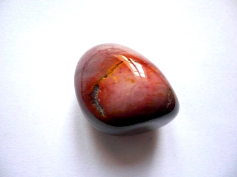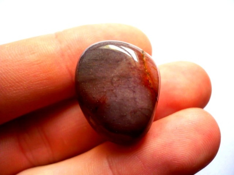 Tromlovaný kámen - jaspis mookait . Rozměry 24 x 19 x 18 mm.