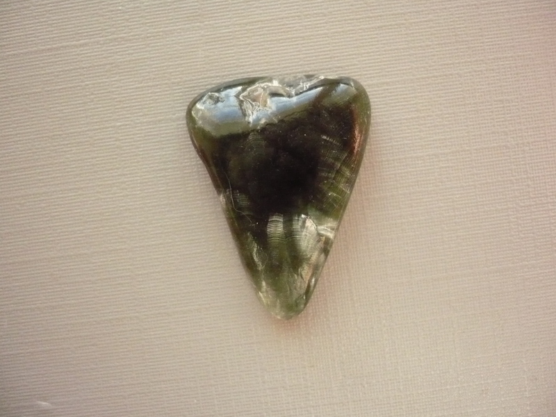 Tromlovaný kámen - serafinit. Rozměry 27 x 20 x 5 mm. Původ Rusko. Také se mu říká "andělská křídla".