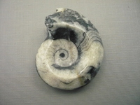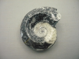 Goniatit - prvohorní fosílie, předchůdce amonitů. Je leštěný z obou stran, původ Maroko. Rozměry 42 x 32 x 15 mm.
