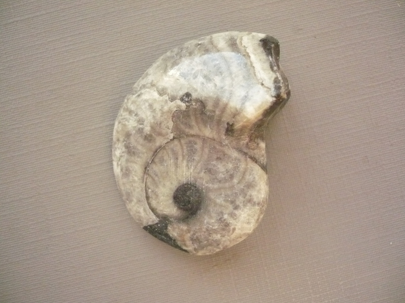 Goniatit - prvohorní fosílie, předchůdce amonitů. Je leštěný z obou stran, původ Maroko. Rozměry 38 x 27 x 13 mm.