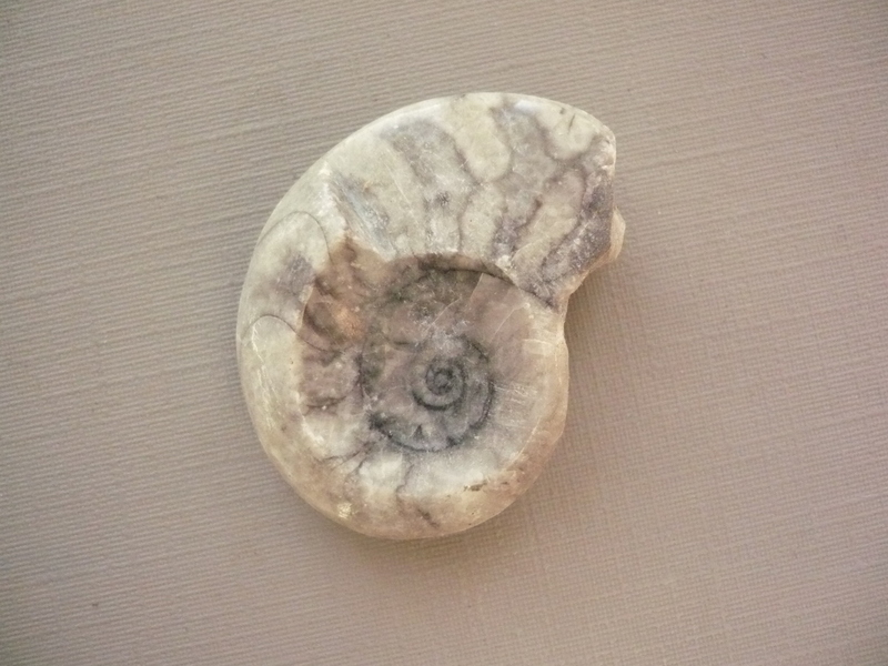 Goniatit - prvohorní fosílie, předchůdce amonitů. Je leštěný z obou stran, původ Maroko. Rozměry 32 x 24 x 10 mm.