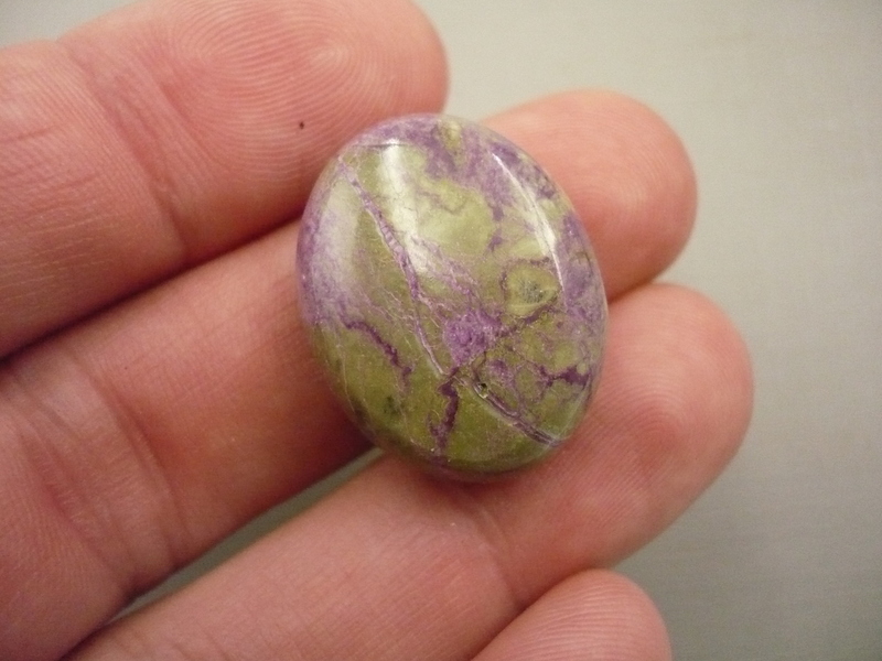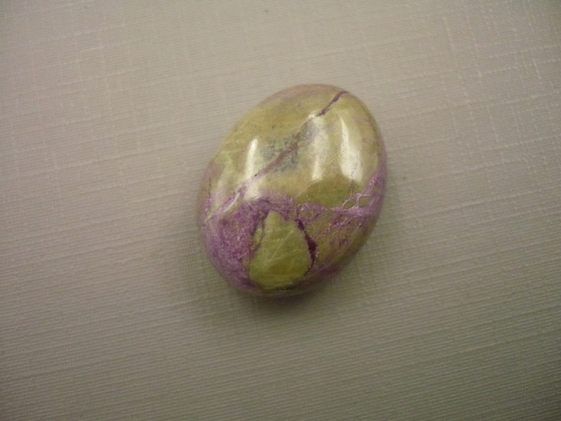Tromlovaný kámen - fialový stichtit se zeleným serpentinitem AAA. Rozměry 25 x 19 x 11 mm. Původ JAR, extra kvalita.
