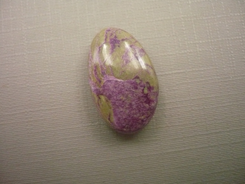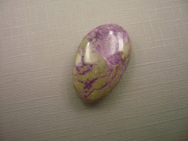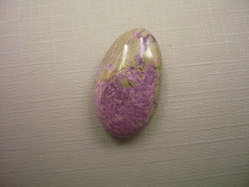 Tromlovaný kámen - fialový stichtit se zeleným serpentinitem AAA. Rozměry 22 x 14 x 7 mm. Původ JAR, extra kvalita.