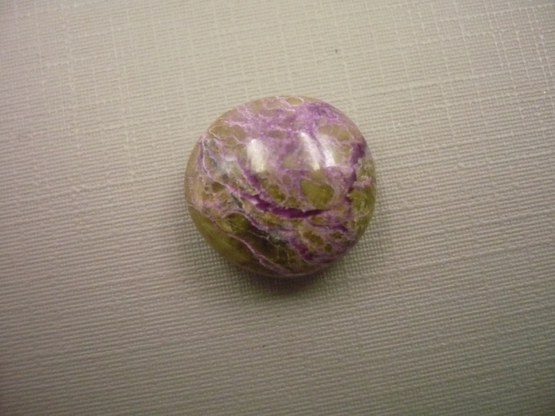 Tromlovaný kámen - fialový stichtit se zeleným serpentinitem AAA. Rozměry 16 x 16 x 8 mm. Původ JAR, extra kvalita.
