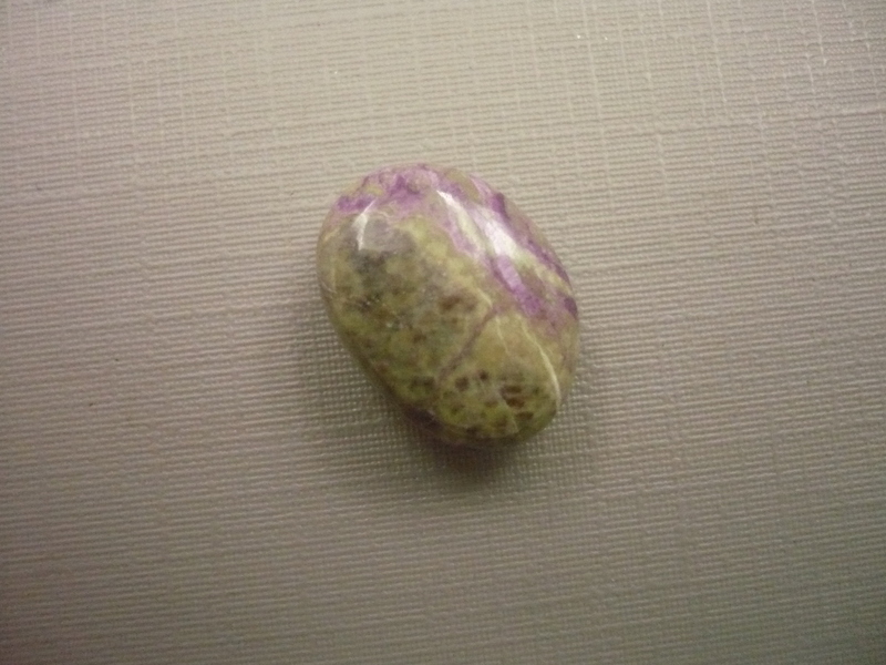 Tromlovaný kámen - fialový stichtit se zeleným serpentinitem AAA. Rozměry 16 x 12 x 8 mm. Původ JAR, extra kvalita.