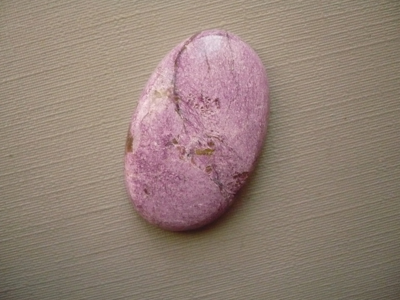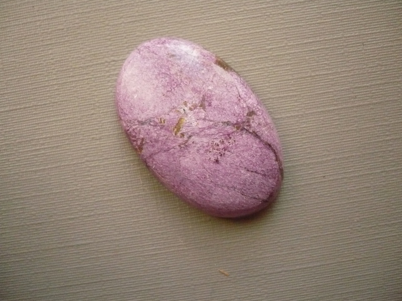 Top kabošon - atlantsit AAA (fialový stichtit se zeleným serpentinitem). Rozměry 31 x 19 x 6 mm. Původ Tasmánie.