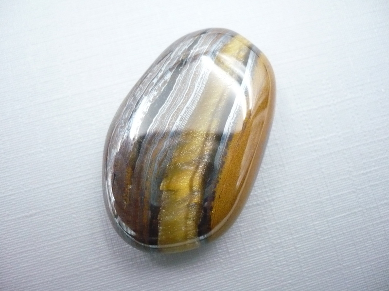 Tromlovaná placka - tygří železo. Rozměr 36 x 23 x 11 mm. Kupujete vyfocený kus.