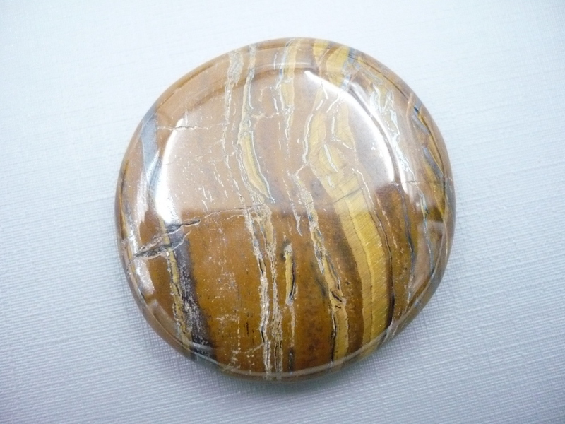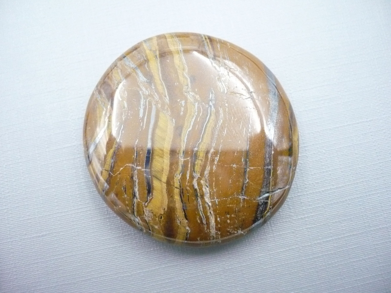 Tromlovaná placka - tygří železo. Rozměry 45 x 43 x 11 mm. Kupujete vyfocený kousek. Leštěné. Vhodné pro cínování, obšívání..