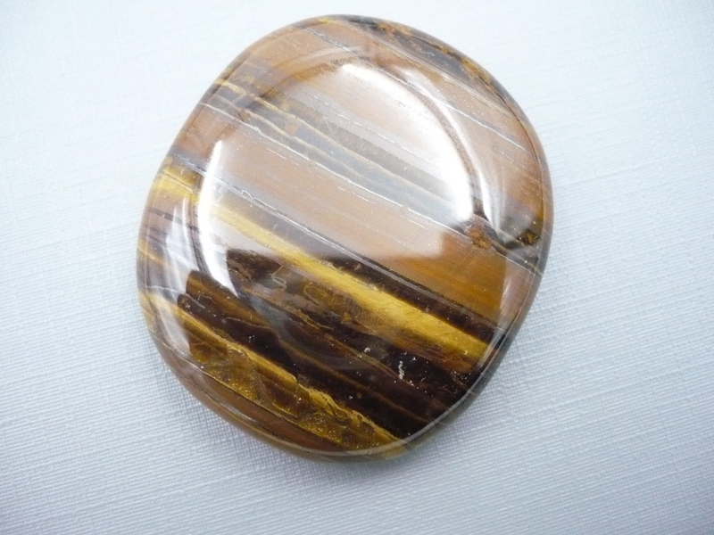 Tromlovaná placka - tygří kůže. Rozměry 45 x 40 x 11 mm. Kupujete vyfocený kousek. Leštěné. Vhodné pro cínování, obšívání..
