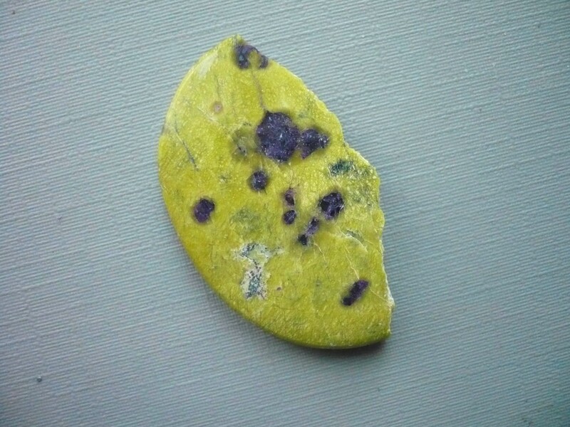 Top kabošon - fialový stichtit se zeleným serpentinitem. Rozměry 38 x 23 x 5 mm. Původ JAR, extra kvalita. Tento je ve slevě, je poškozený.