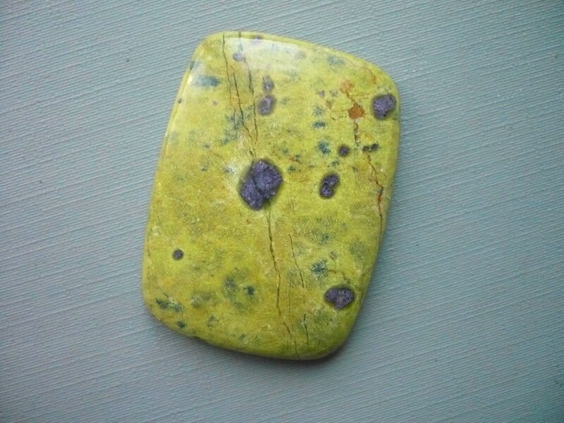 Top kabošon - fialový stichtit se zeleným serpentinitem. Rozměry 44 x 32 x 6 mm. Původ JAR, extra kvalita.