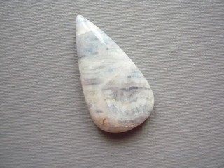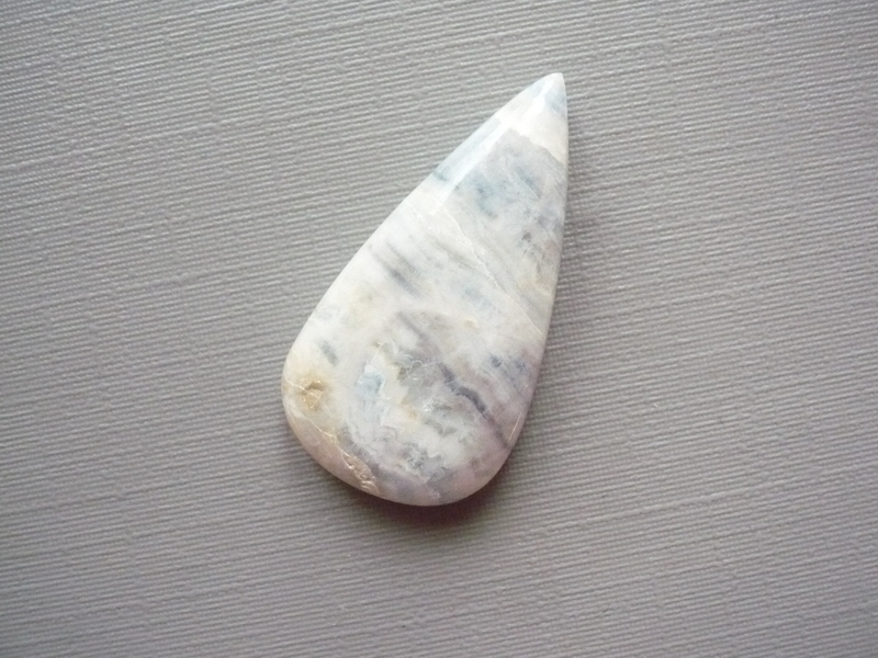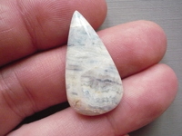 Kabošon - Scheelit modrý. Rozměry 30 x 16 x 6 mm. Vhodné pro cínování, obšívání... Kupujete tento konkrétní kus. Původ Mexiko. Scheelit byl objeven nedávno. Minerál jako takový je znám již delší dobu, ale jeho modrá varianta je známá poměrně krátce. Jeho vzhled připomíná vlnky nebo krajku. Jedná se o rudu wolframu, minerál wolframanu vápenatého. Modrý scheelit sestává z více druhů minerálů - kalcitu, který dodává nezaměnitelnou modrou barvu, scheelitu (tmavě krémové, zlaté nebo žluté části) a modrého dolomitu, který vytváří pruhy, vlnky, krajku.