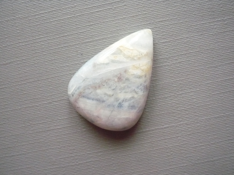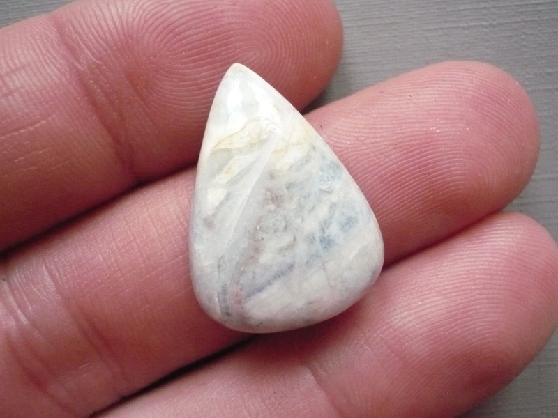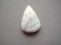 Kabošon - Scheelit modrý. Rozměry 24 x 17 x 6 mm. Vhodné pro cínování, obšívání... Kupujete tento konkrétní kus. Původ Mexiko. Scheelit byl objeven nedávno. Minerál jako takový je znám již delší dobu, ale jeho modrá varianta je známá poměrně krátce. Jeho vzhled připomíná vlnky nebo krajku. Jedná se o rudu wolframu, minerál wolframanu vápenatého. Modrý scheelit sestává z více druhů minerálů - kalcitu, který dodává nezaměnitelnou modrou barvu, scheelitu (tmavě krémové, zlaté nebo žluté části) a modrého dolomitu, který vytváří pruhy, vlnky, krajku.