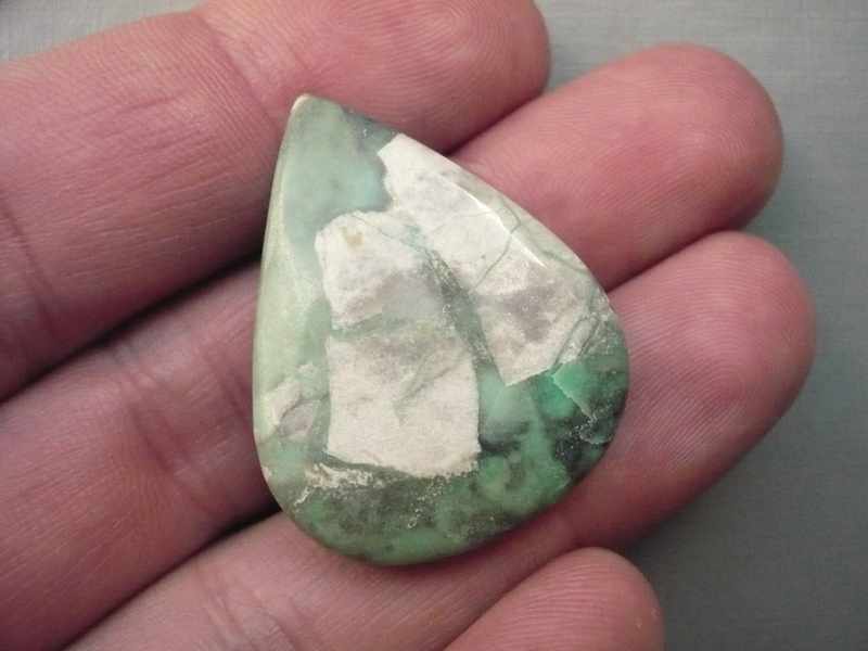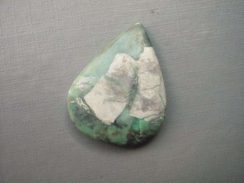Kabošon - variscit (regalit, jaspis mořský sediment). Jsou to nádherné kameny s abstraktní kresbou, byť dobarvené. Rozměr 33 x 26 x 6 mm. Původ Bolívie.