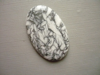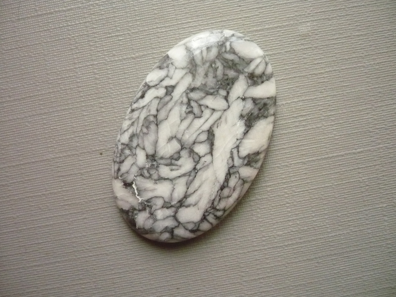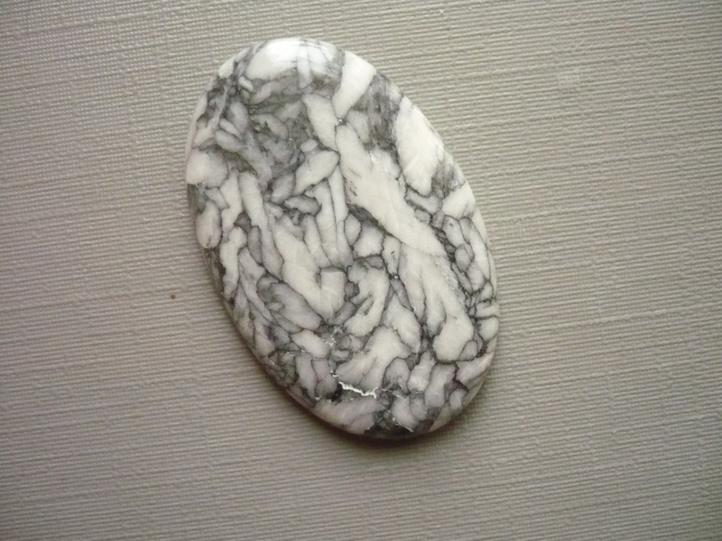 Kabošon - pinolit. Říká se mu také borovicový kámen. Je to směs dolomitu, magnezitu a grafitu. Rozměry 35 x 23 x 4 mm. Původ Rakousko. Kupujete vyfocený kousek. Druh materiálu