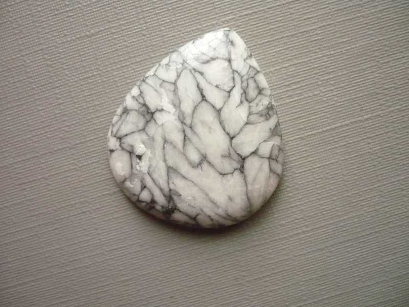 Kabošon - pinolit. Říká se mu také borovicový kámen. Je to směs dolomitu, magnezitu a grafitu. Rozměry 27 x 24 x 4 mm. Původ Rakousko. Kupujete vyfocený kousek.