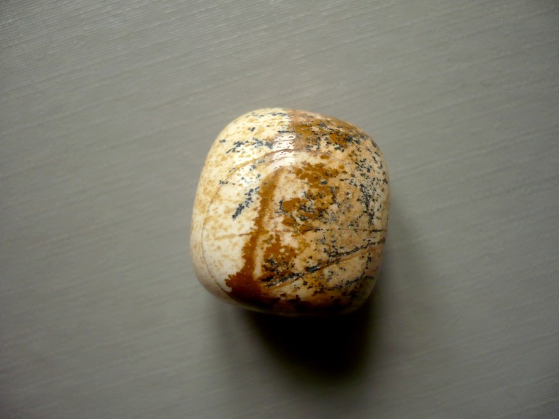 Tromlovaný kámen - jaspis obrázkový. Rozměry 21 x 18 x 16 mm. Vhodný pro cínování, wire-wrapping.. Původ Namíbie.