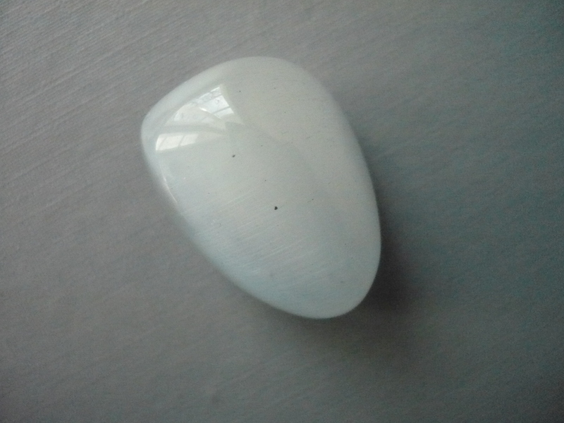 Tromlovaný kámen - kočičí oko (ulexit). Rozměr 29 x 19 x 18 mm. Tento kamínek je syntetický, ale velmi efektní.