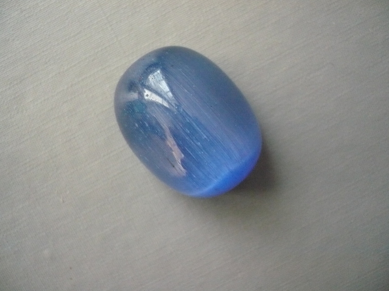 Tromlovaný kámen - kočičí oko (ulexit). Rozměr 26 x 20 x 17 mm. Tento kamínek je syntetický, ale velmi efektní.