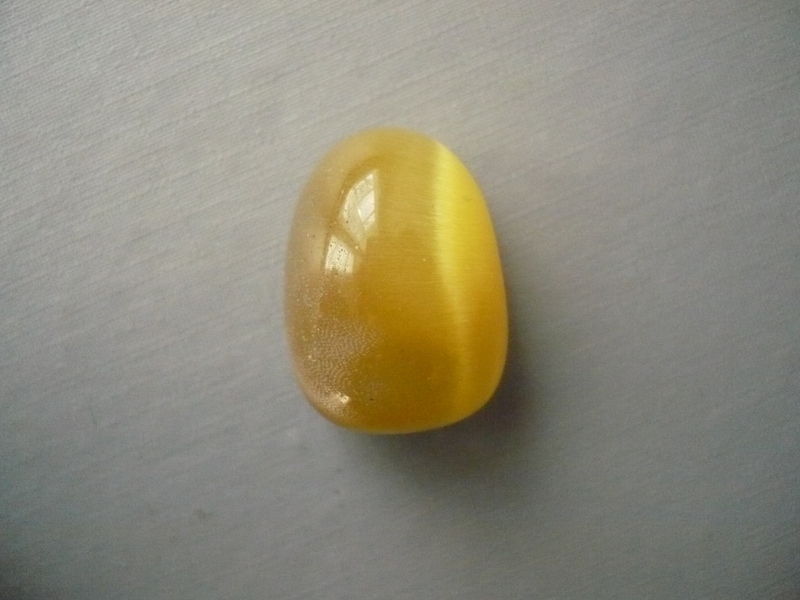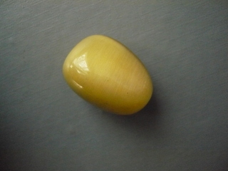 Tromlovaný kámen - kočičí oko (ulexit). Rozměr 24 x 18 x 16 mm. Tento kamínek je syntetický, ale velmi efektní.